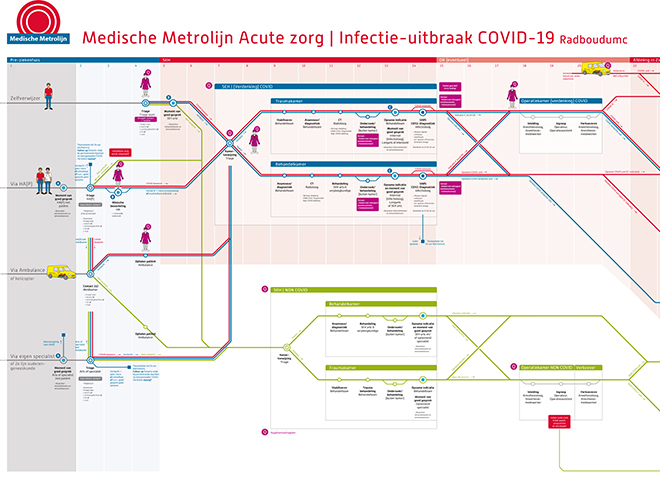 De processen in de zorg worden in dit kader meestal met richtlijnen en protocollen beschreven, en dus met woorden. Terwijl beeld soms veel duidelijker kan maken wat nodig is en wat eraan schort. “Als je zo’n Medische Metrolijn aan het maken bent, ontdek je vaak hiaten in de implementatie van de richtlijnen en protocollen. Als je iets uittekent, zie je opeens een fout of lacune. Dan weet je dus: dit moet anders.”