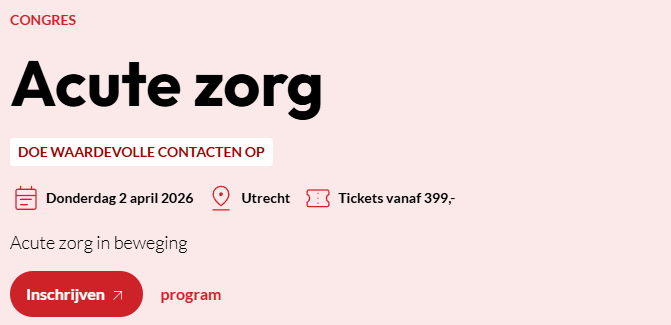 Tijdens het 11e Zorgvisie Acute zorgcongres worden mogelijke oplossingsrichtingen besproken. Ook krijgt u inzicht in succesvolle praktijkvoorbeelden, beleidsontwikkelingen en vernieuwende samenwerkingsmodellen.