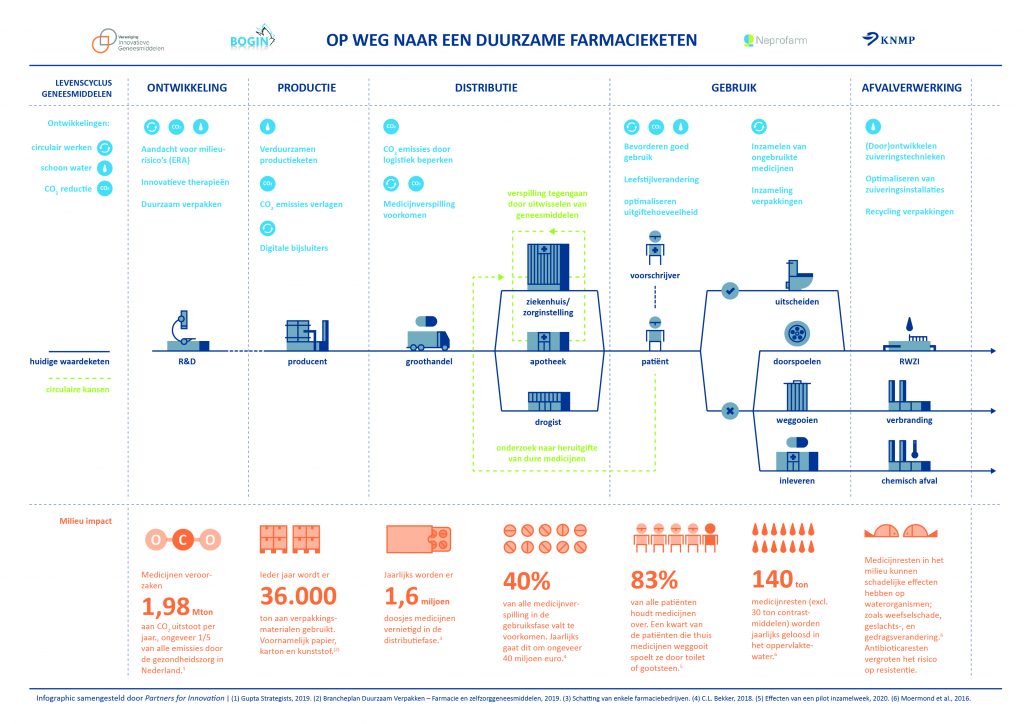 Dat bleek tijdens op 13 augustus tijdens de tweede RocheDialogues@Home. Gespreksleider Inge Diepman sprak met Brigit van Soest, programmamanager Coalitie Duurzame Farmacie, Gertjan Hooijman, apotheker bij Alphega Apotheek in Asten, en Wendy Maas, health policy lead bij Roche. Het probleem van verspilling is groot, de kosten zijn hoog, zo blijkt uit de grafieken uit het rapport ‘Op weg naar duurzame farmacie’. Maar het gaat niet alleen om de kosten. Medicijngebruik en –verspilling hebben ook een groot effect op de kwaliteit van het water in ons land. Gebruikte medicijnen komen bijvoorbeeld via urine in de toilet terecht en ongebruikte geneesmiddelen worden soms zomaar doorgespoeld. “Jaarlijks komt er ongeveer 140 ton aan medicijnresten in ons water terecht”, zegt Brigit van Soest, “zo’n 90 tot 95 procent door gebruik, de rest door het doorspoelen. Dat heeft effecten op flora en fauna in het water. Er zitten pijnstillers, antipsychotica en hormonen tussen, en die kunnen weefselschade, gedragsverandering en geslachtsverandering (bijvoorbeeld bij vissen) veroorzaken.” Als programmamanager verbindt ze daarom partijen in de zorg met waterschappen, drinkwaterbedrijven en andere waterorganisaties om samen te werken aan het voorkomen van medicijnresten in het water. “Maar de impact van medicijnen op het milieu is ook te zien aan CO2-uitstoot”, aldus Van Soest. “Van de totale uitstoot wordt 6 a 7 procent veroorzaakt door de zorg. Daarvan komt 20 procent voor rekening van medicijngebruik.”