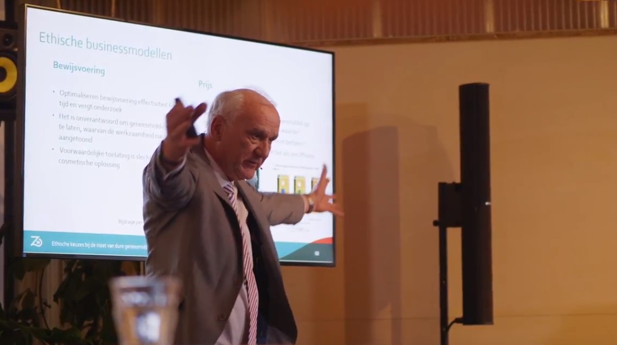 Ingmar de Gooijer is director Public Policy & Reimburcement bij myTomorrows. Die organisatie zet zich in voor betere toegang tot geneesmiddelen die in ontwikkeling zijn. In Den Haag schetste hij de jarenlange ontwikkeling van een medicijn, waarbij vooral de grootschalige derdefase studies erg kostbaar zijn. Naast de hoge kosten zijn beschikbaarheid voor mensen die baat hebben bij het nieuwe medicijn een probleem, en het ontbreken aan voldoende data.