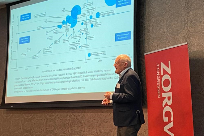 Tijdens de ontbijtsessie kwamen soms schrikbarende sheets met sterftecijfers langs, door infectieziekten die met vaccinaties zijn te voorkomen. “Het toont al met al aan dat er veel gezondheidswinst is te behalen”, aldus de voormalig huisarts. “Maar heel veel winst laten we lopen omdat de invoering zo lang duurt. Gemiddeld liggen vaccins in Nederland zo’n negen jaar ‘op de plank’ voordat ze via een programma in de arm gaan.” Hoe dat komt? Gebrek aan kennis: weinig urgentie, trage beoordeling en onderbenutting van de routes naar de arm, legt Van Essen uit. Zo moest het allereerste waterpokkenvaccin meer dan vijftien jaar wachten op überhaupt een advies van de Gezondheidsraad, kostte het advies over de invoer van het HPV-vaccin voor jongens zo’n drie jaar en vertraagde een onderzoek naar uitvoerbaarheid en betaalbaarheid de beleidsreactie op maternale kinkhoestvaccinatie ongeveer tweeënhalf jaar. Alleen de COVID-vaccinaties wisten de weg naar de arm relatief snel te vinden.